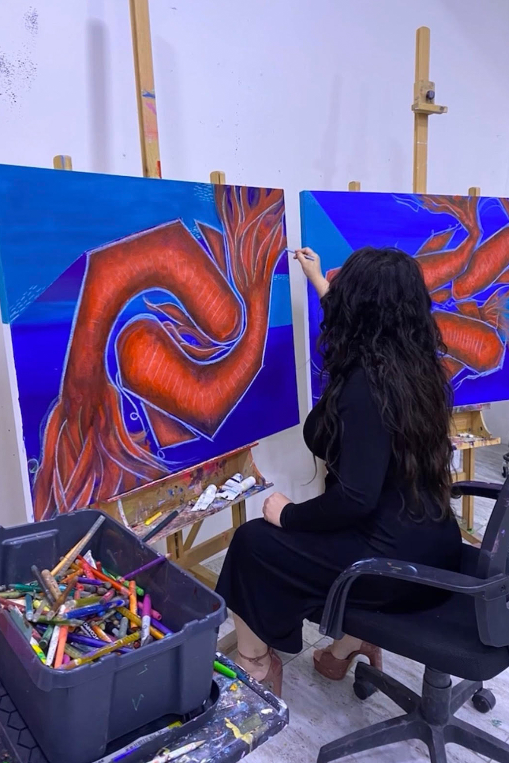 Watch Nadine Alshaikh bring her vision to life in this captivating time-lapse of her painting process. From the first brushstroke to the final detail, her technique reveals a harmonious blend of spontaneity and precision. The video highlights her unique approach to color, composition, and texture—offering an intimate look at the artistry behind her celebrated works.